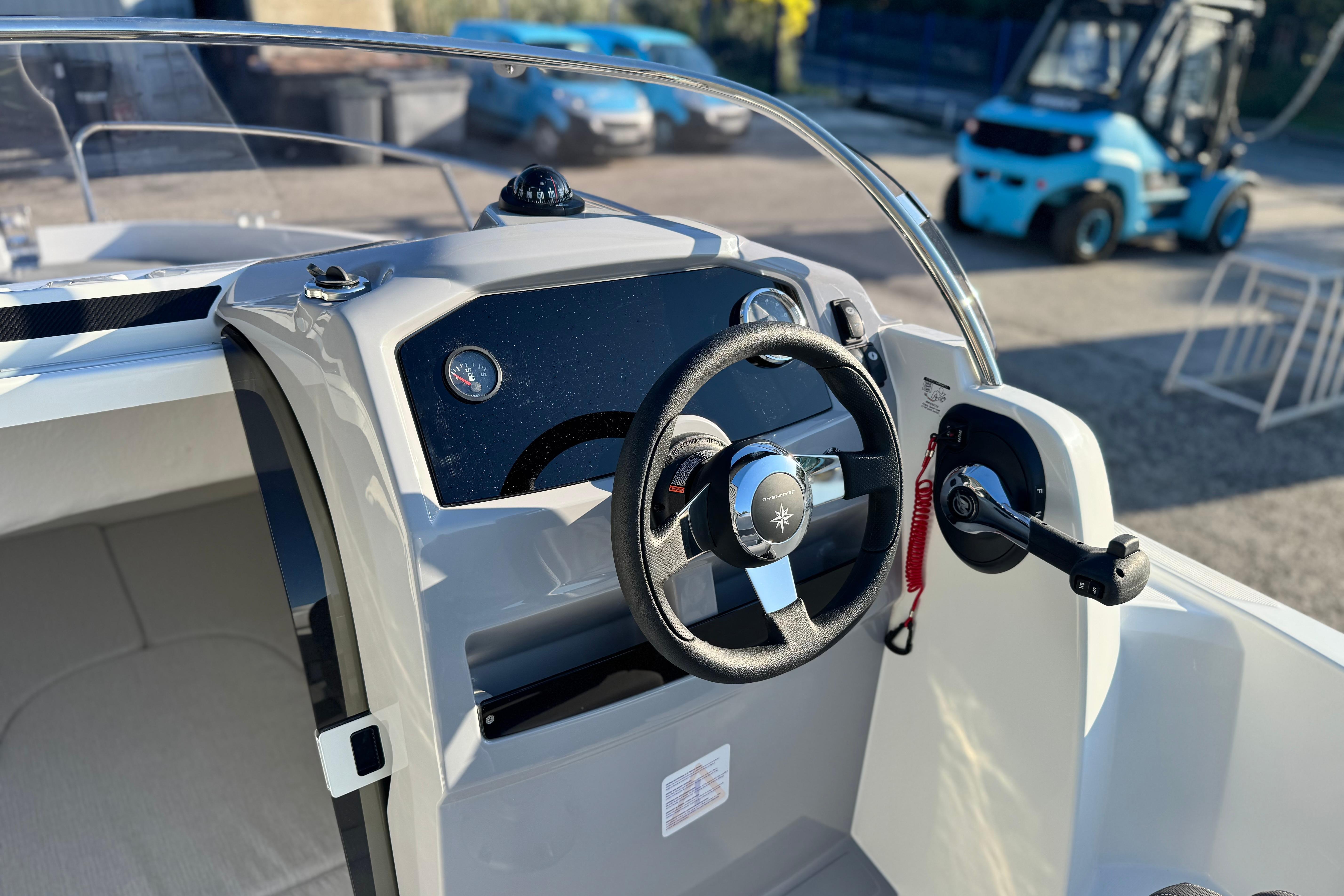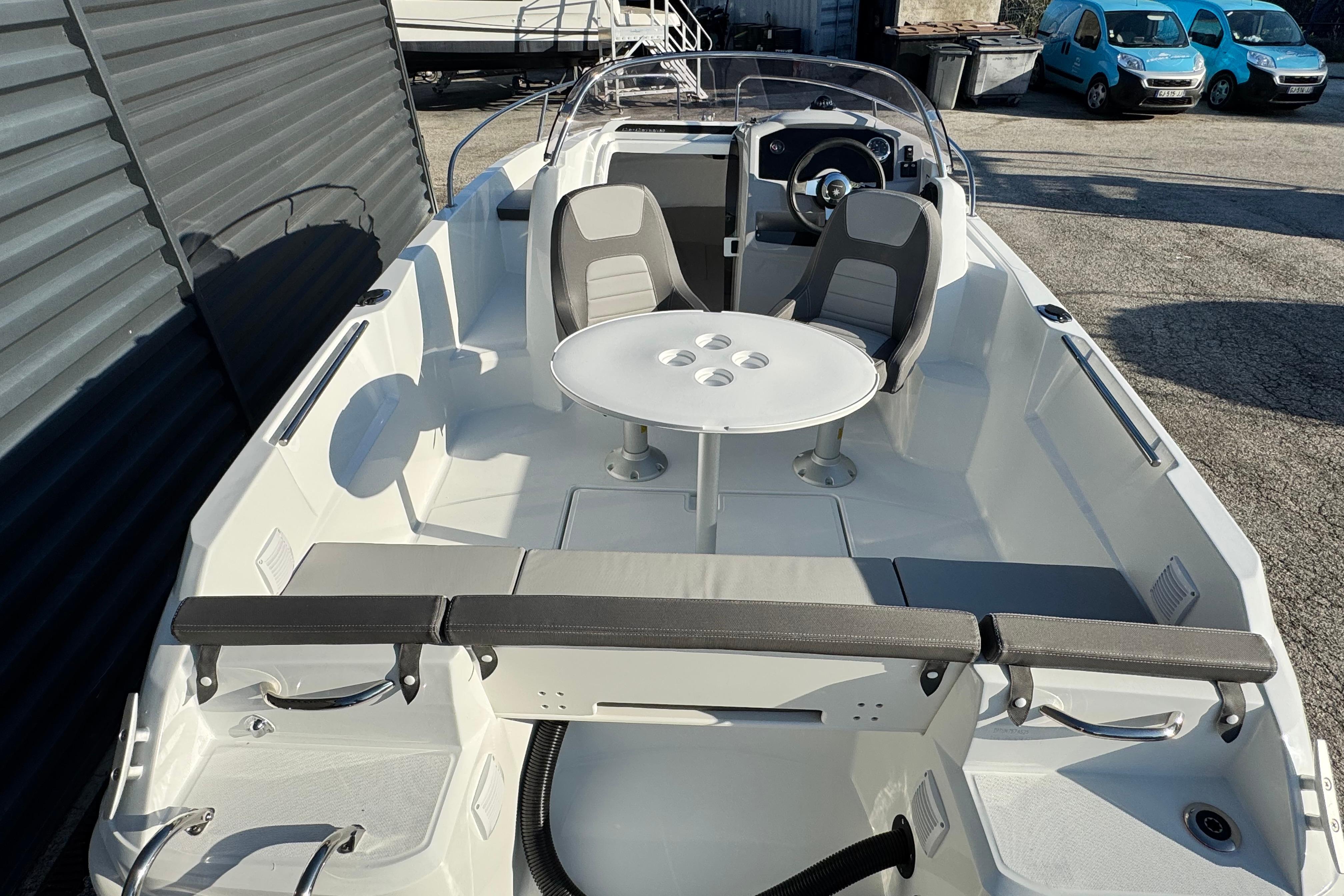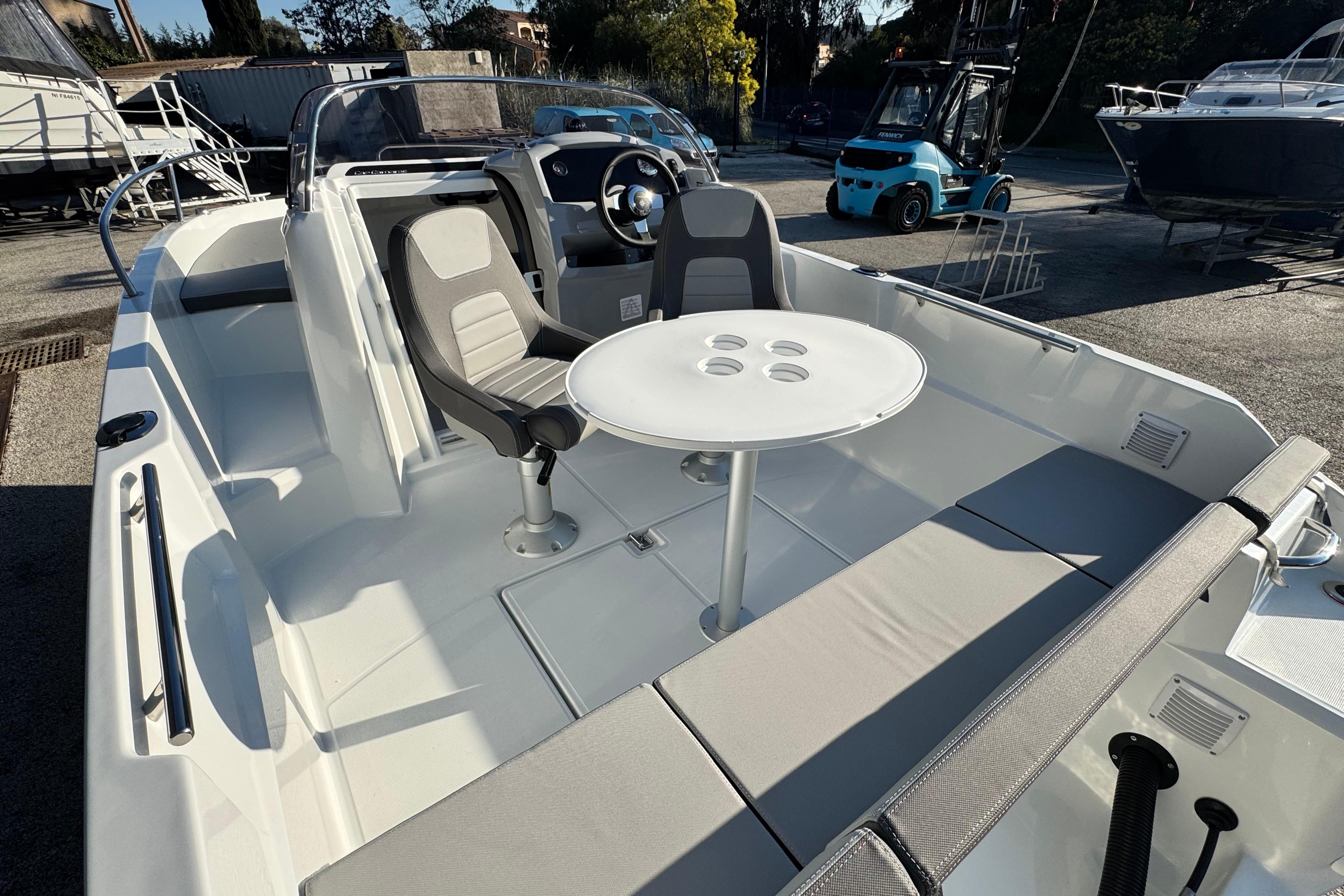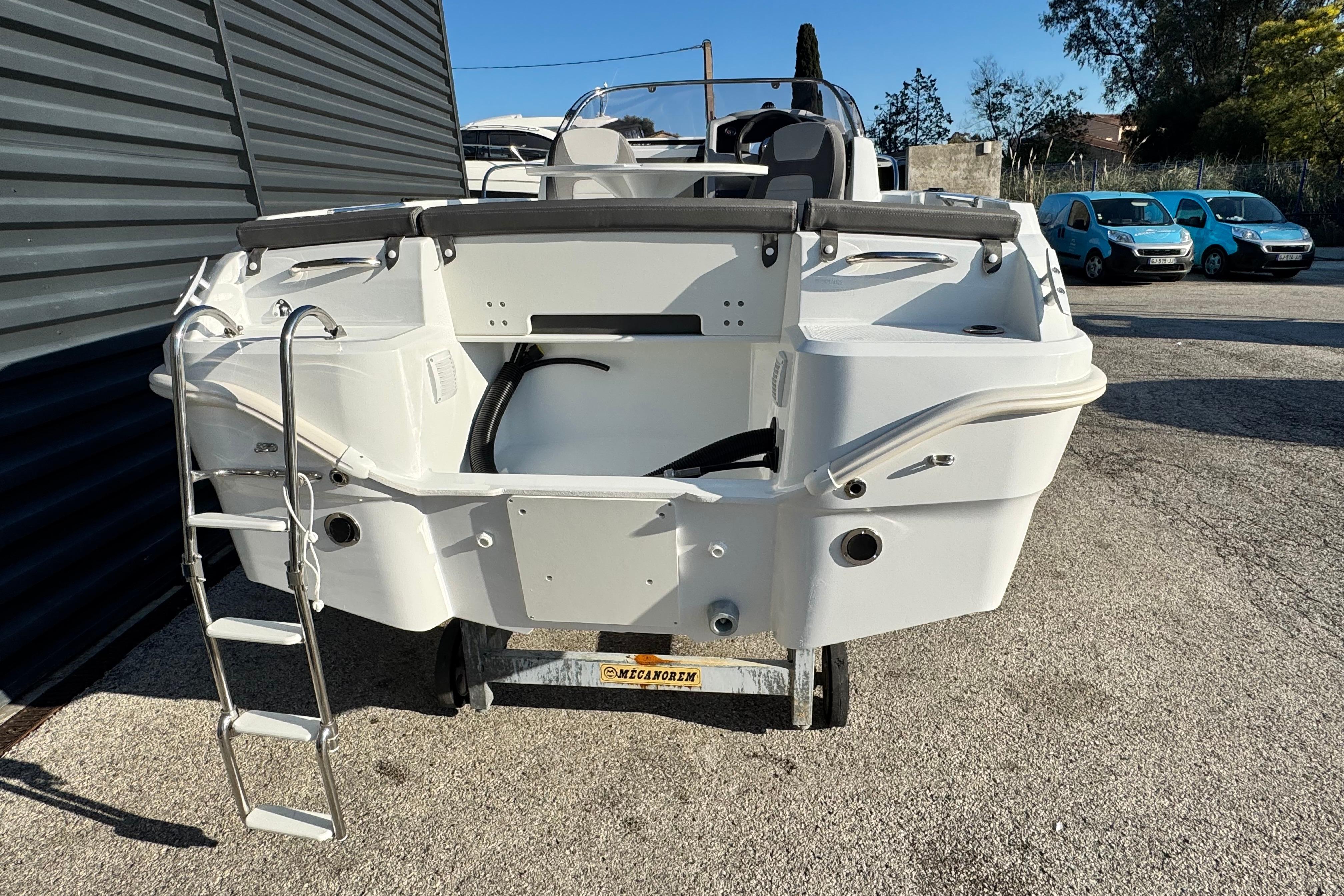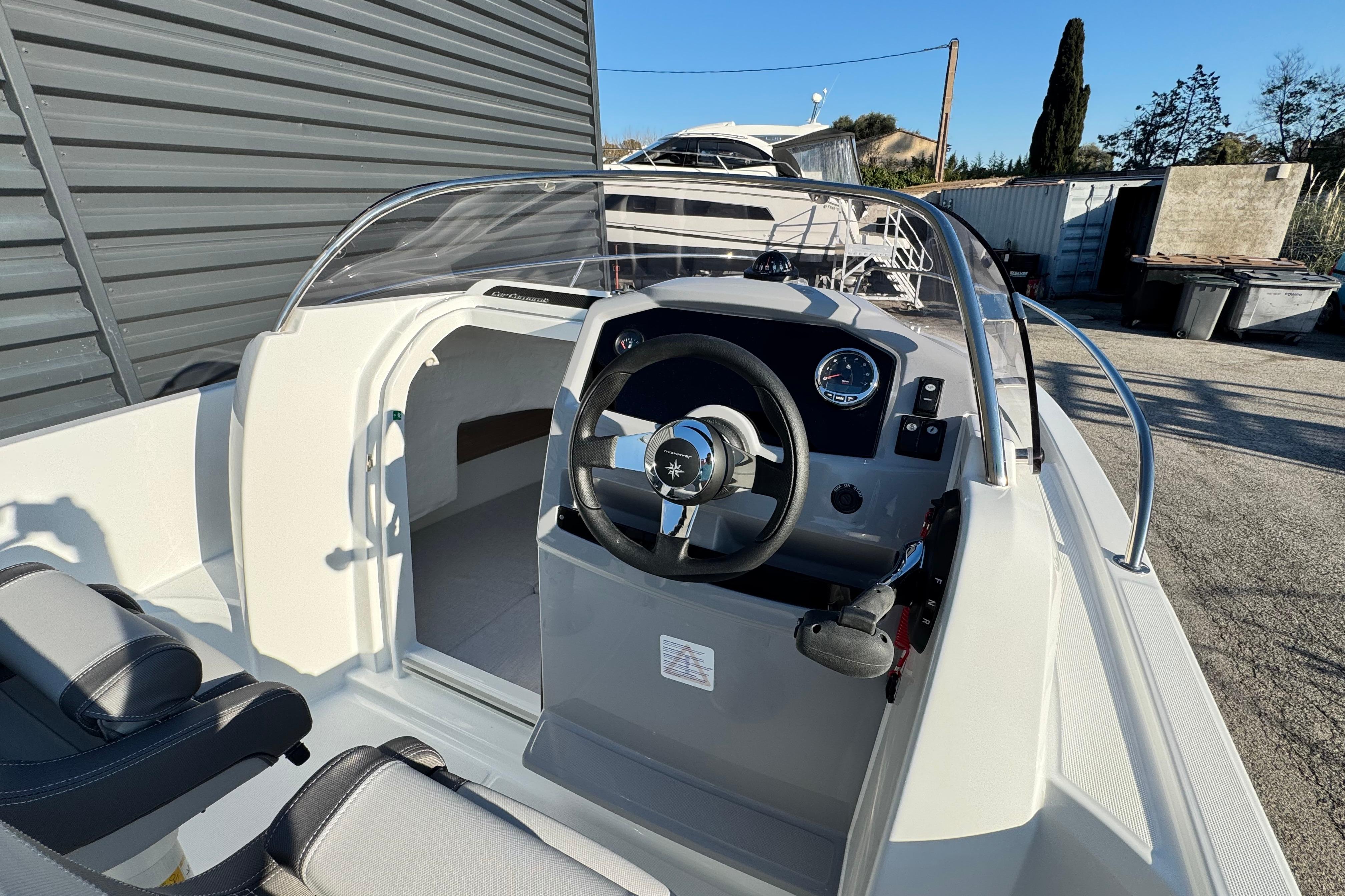 Avec sa coque blanche élégante, sa carène stable et performante, ce bateau de moins de 6 mètres offre une prise en main facile et un confort haut de gamme grâce à sa finition Première. Parfait pour la pêche, le ski nautique ou de simples balades au large de Bormes, Hyères ou Porquerolles.