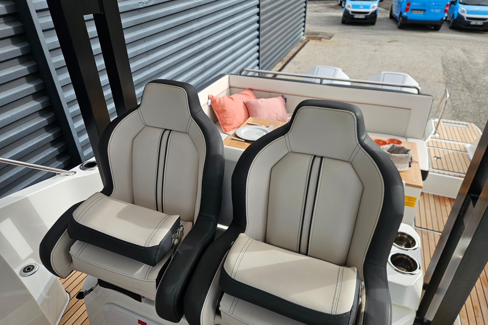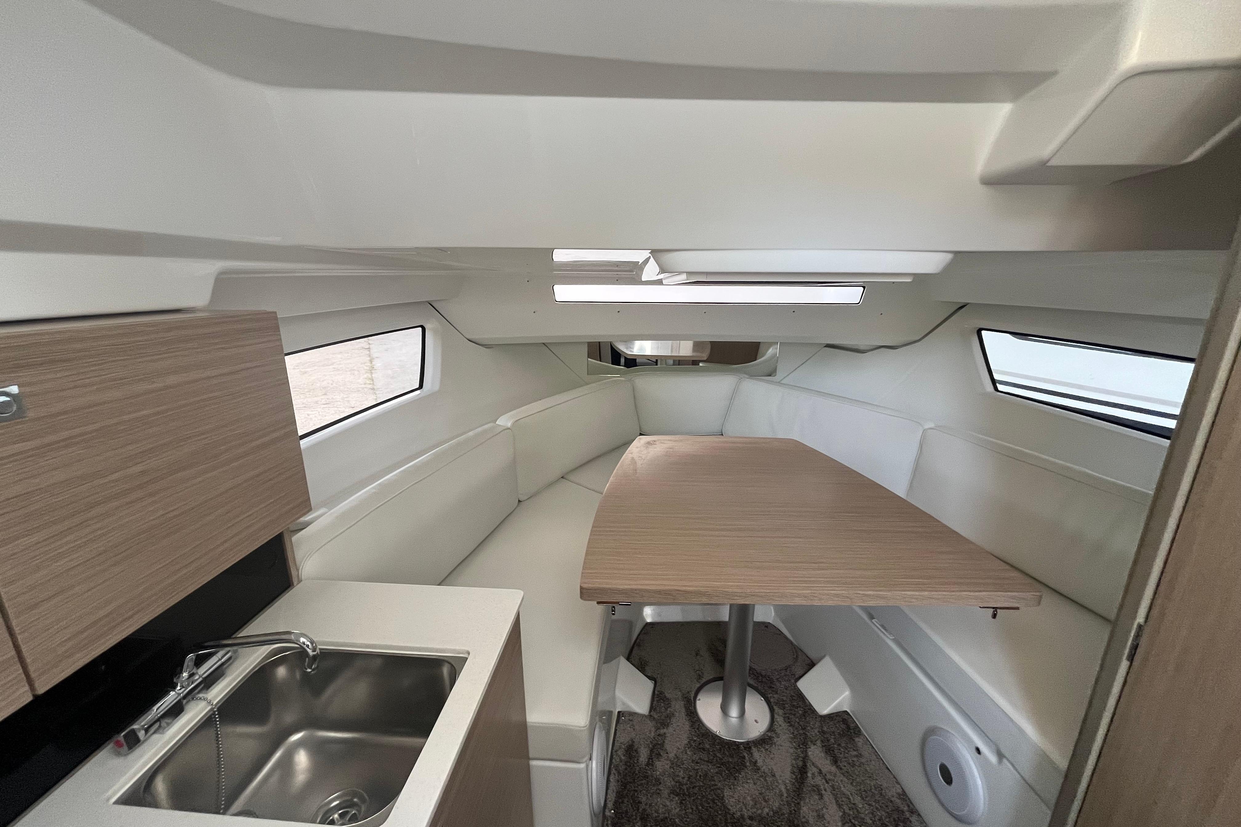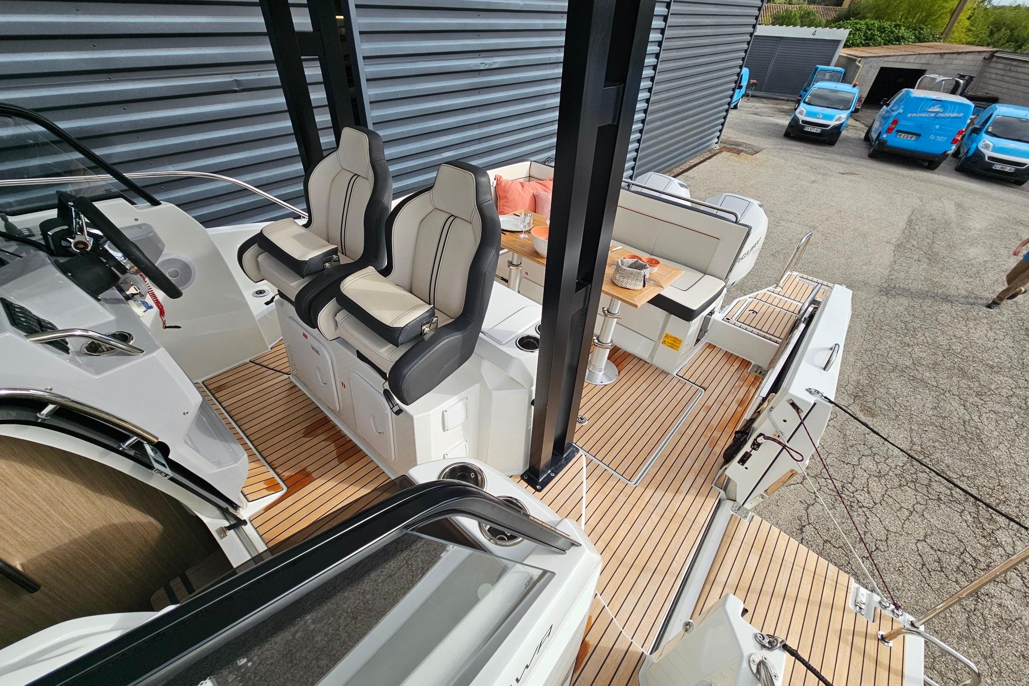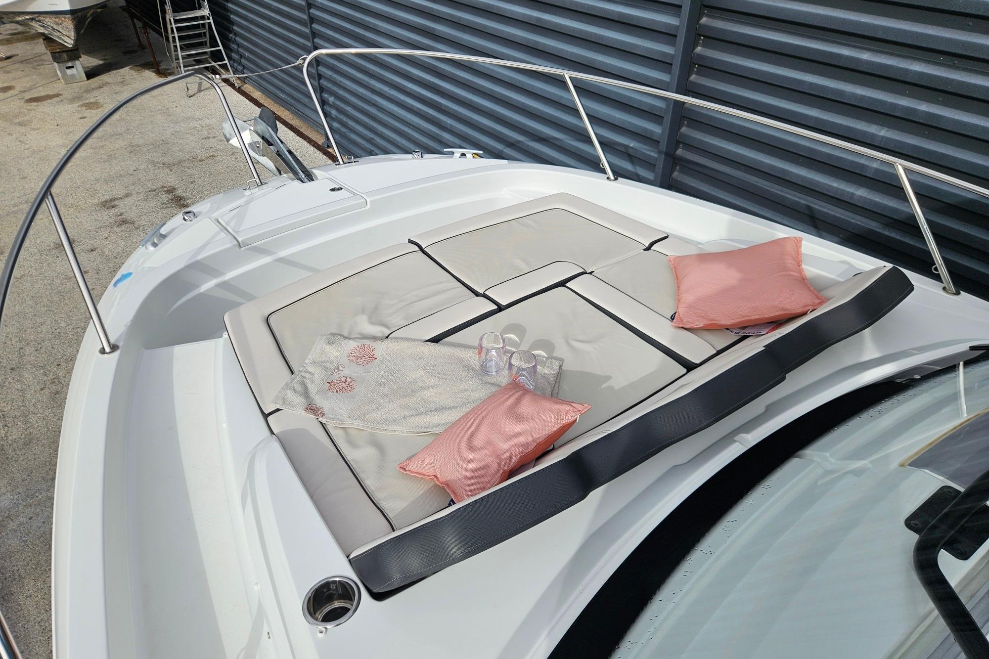 Son vaste bain de soleil avant, sa circulation fluide, sa cabine spacieuse et sa salle d’eau séparée en font un modèle polyvalent, parfaitement adapté aux sorties familiales, aux week-ends au mouillage ou aux journées sportives.