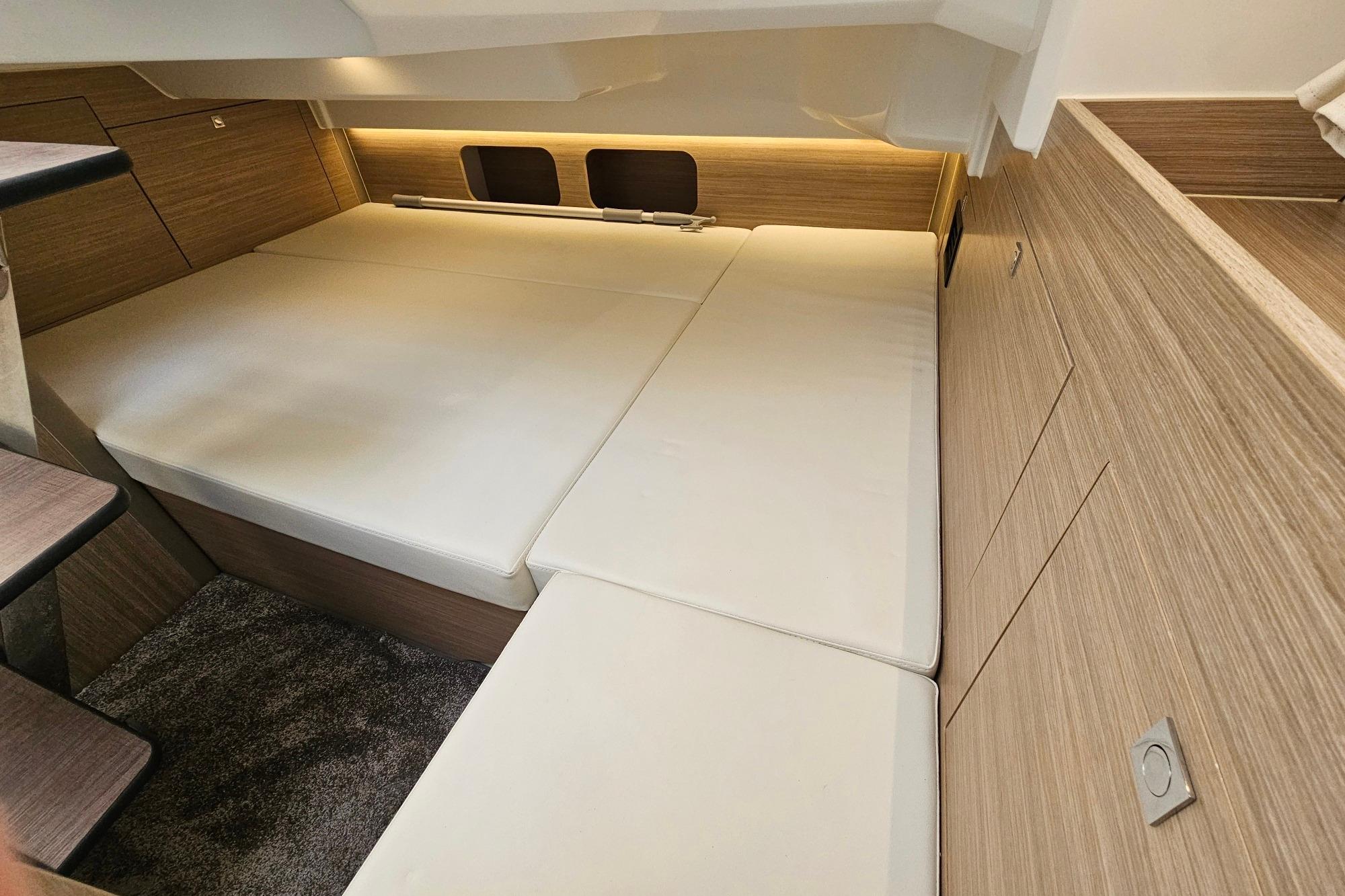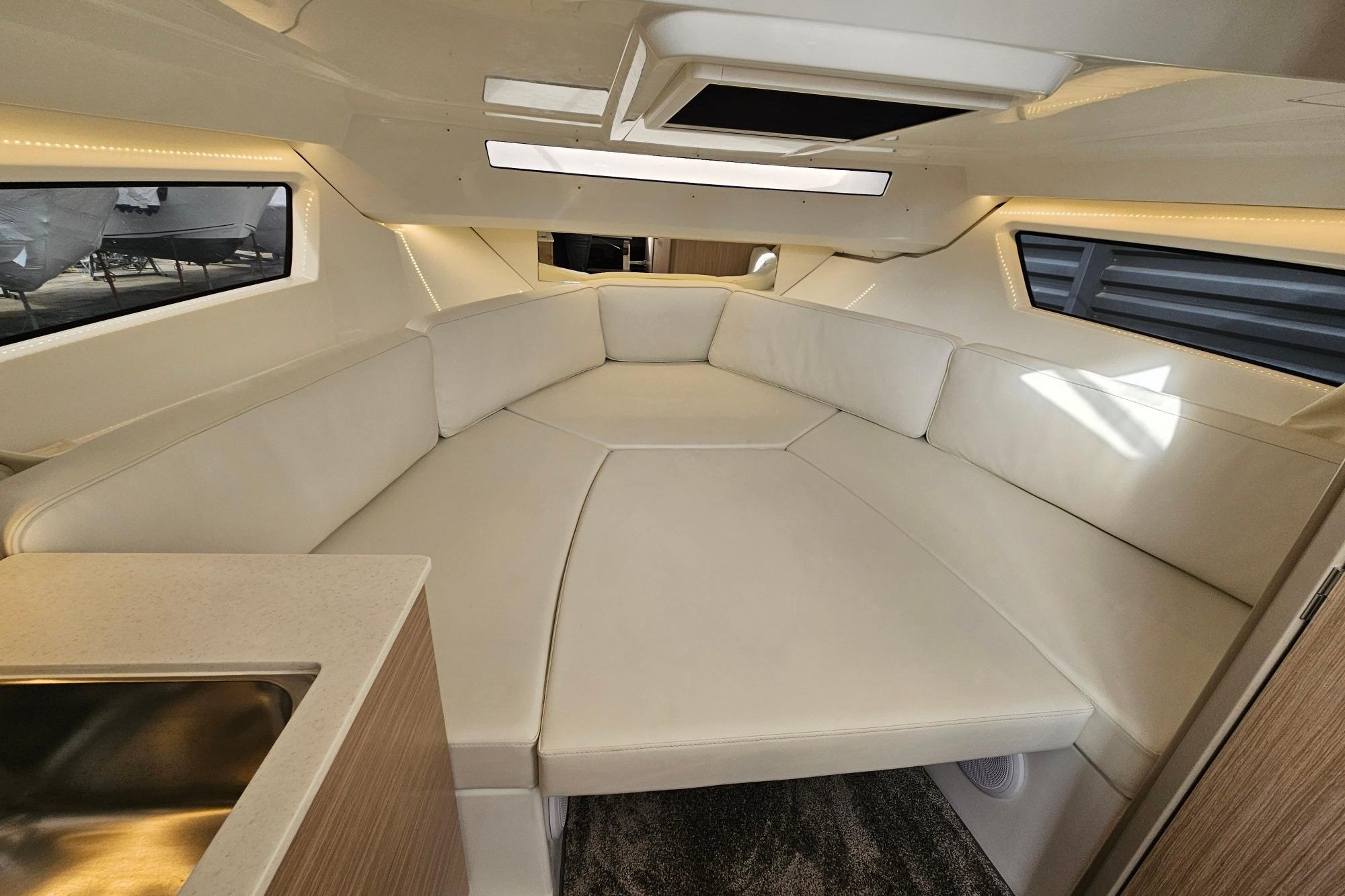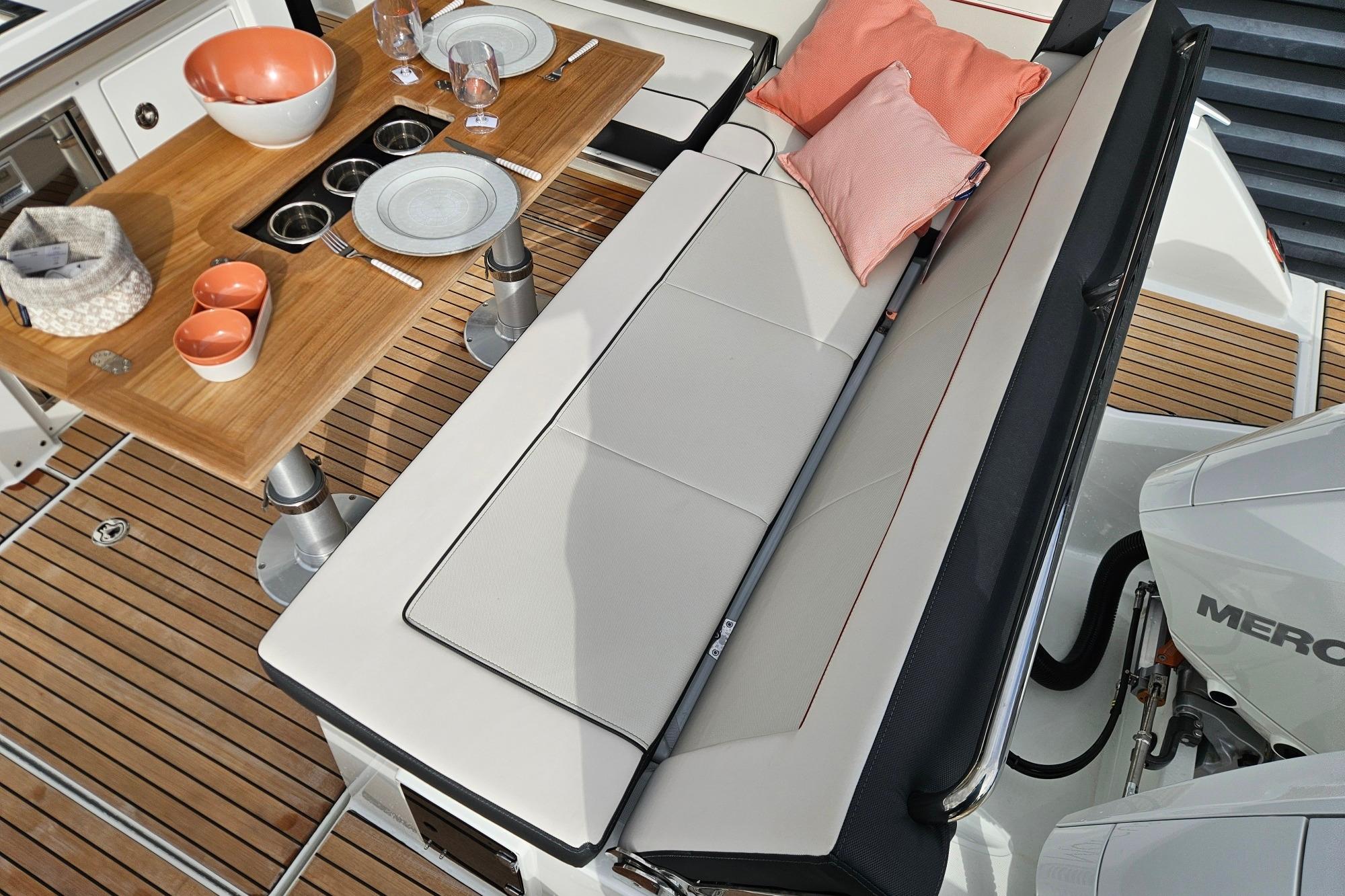 Son vaste bain de soleil avant, sa circulation fluide, sa cabine spacieuse et sa salle d’eau séparée en font un modèle polyvalent, parfaitement adapté aux sorties familiales, aux week-ends au mouillage ou aux journées sportives.