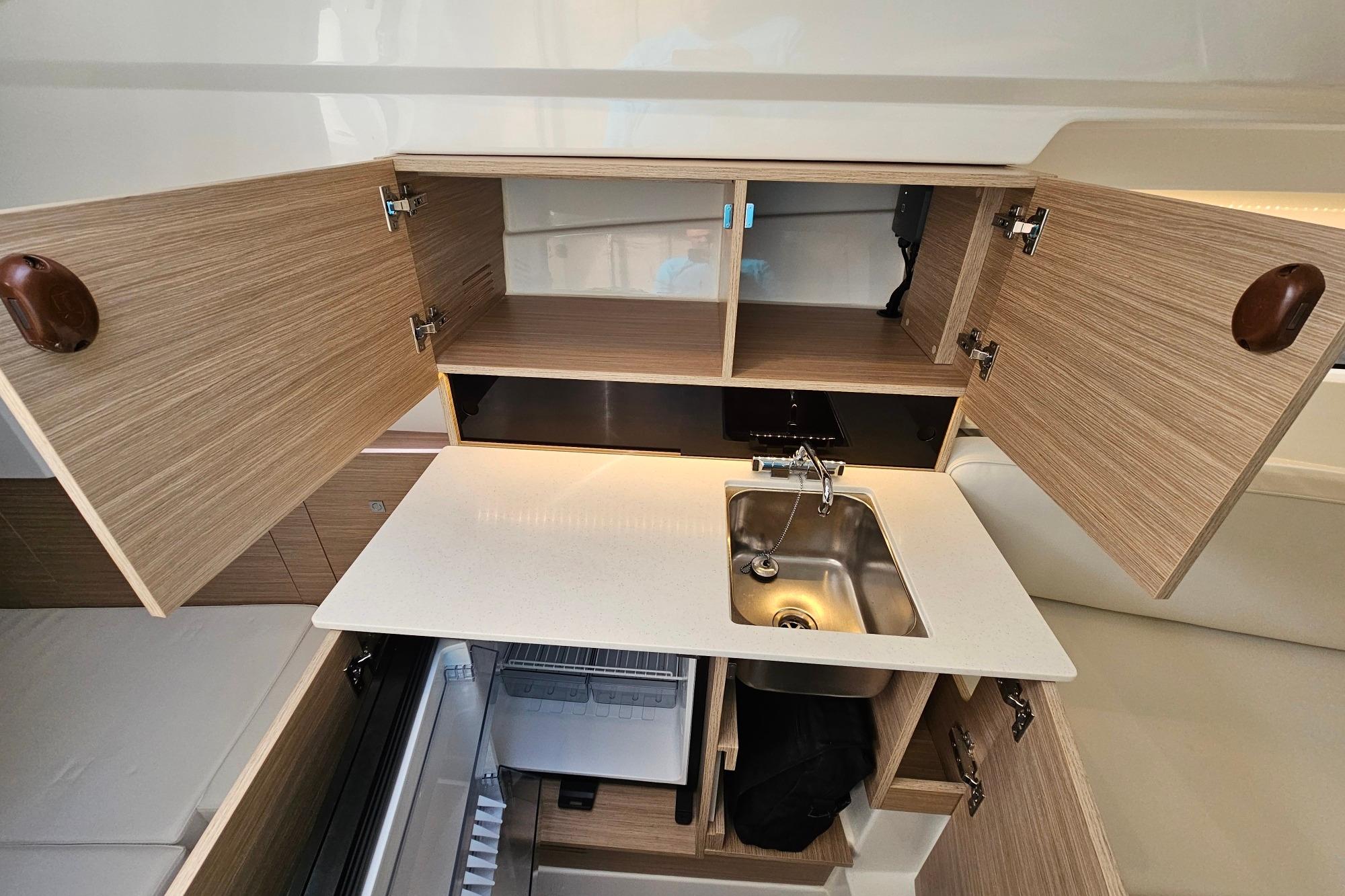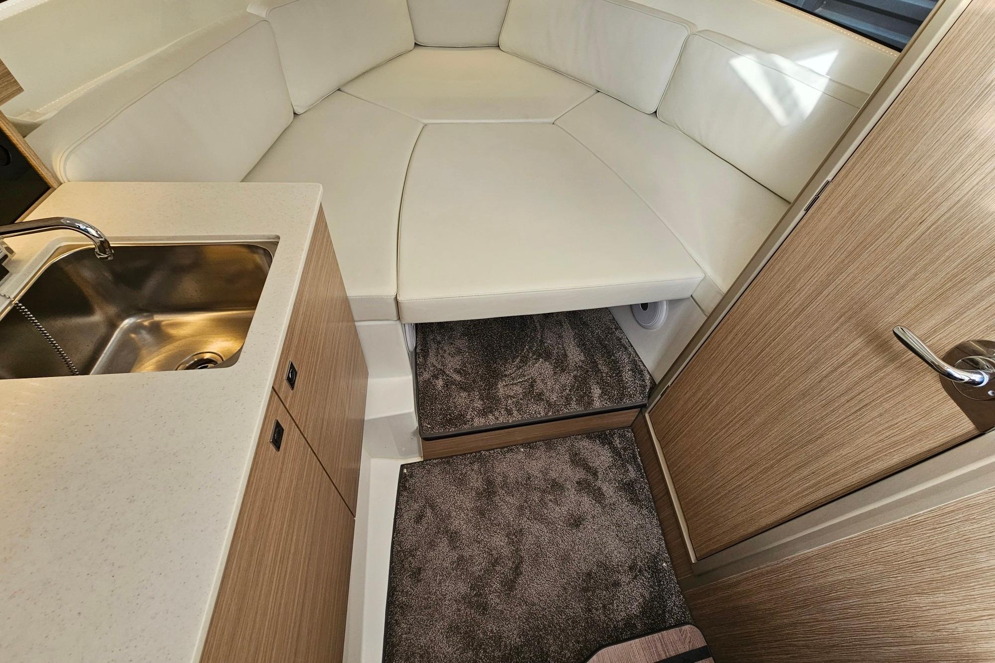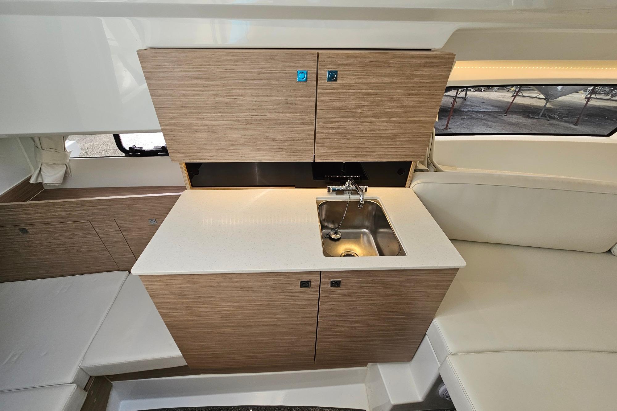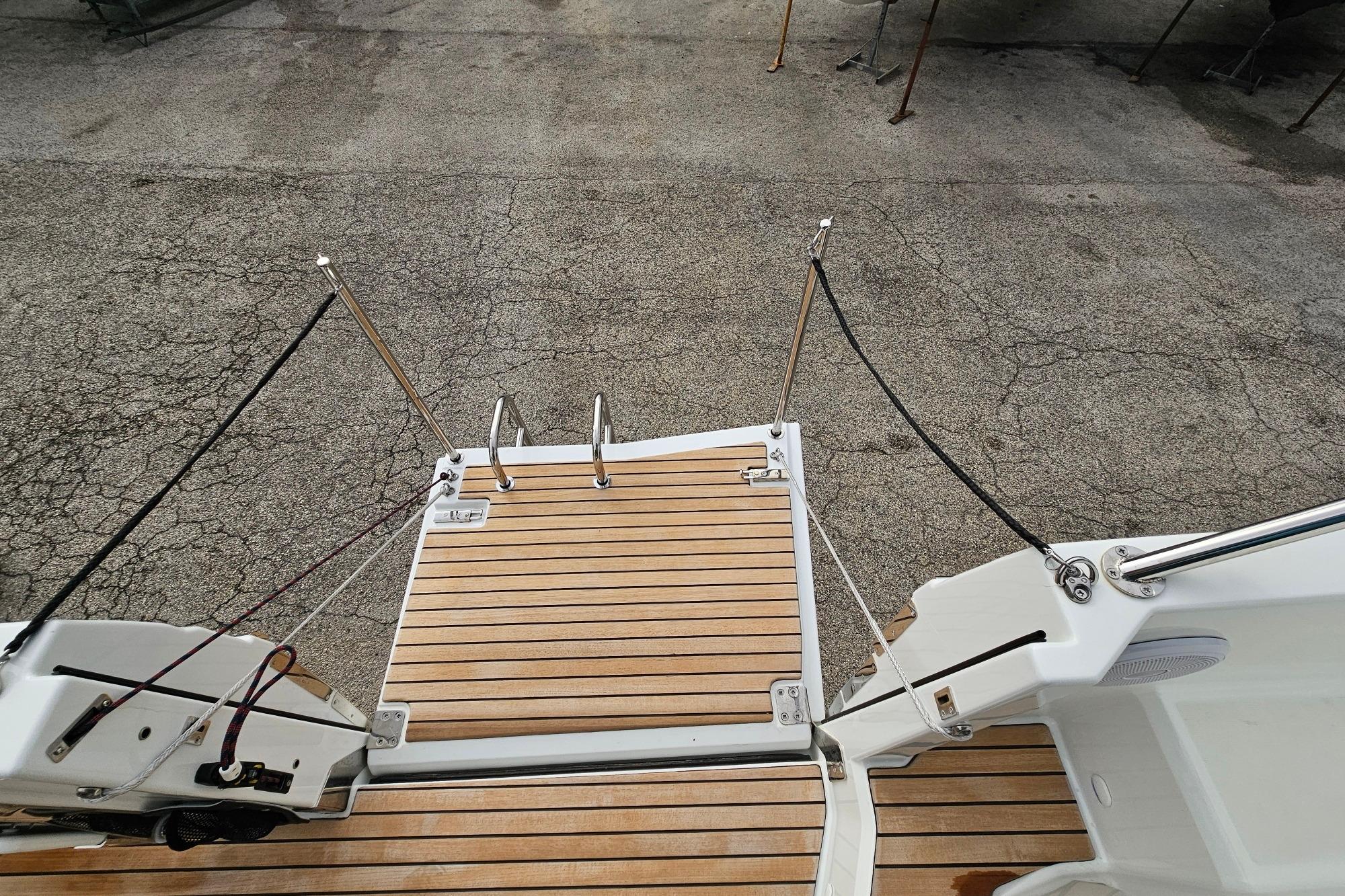 Son vaste bain de soleil avant, sa circulation fluide, sa cabine spacieuse et sa salle d’eau séparée en font un modèle polyvalent, parfaitement adapté aux sorties familiales, aux week-ends au mouillage ou aux journées sportives.