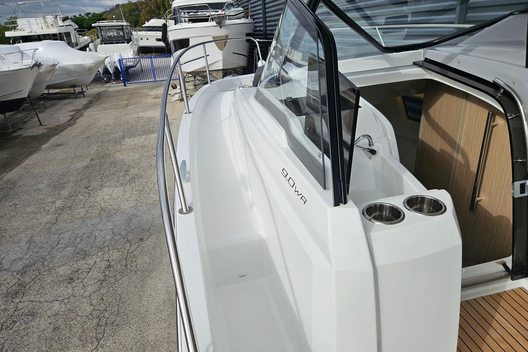 Pensé pour la navigation méditerranéenne, ce 9.0 WA Série 2 bénéficie d’un équipement complet : T-Top rigide, propulseur d’étrave, flaps automatiques Zipwake, électronique Garmin avec GPS traceur sondeur 92SV et VHF 215i AIS, cockpit en teck, terrasse latérale, selleries premium, équipements de confort intérieur et extérieur, sans oublier de nombreuses options destinées à faciliter les mouillages, les manœuvres et les week-ends à bord.